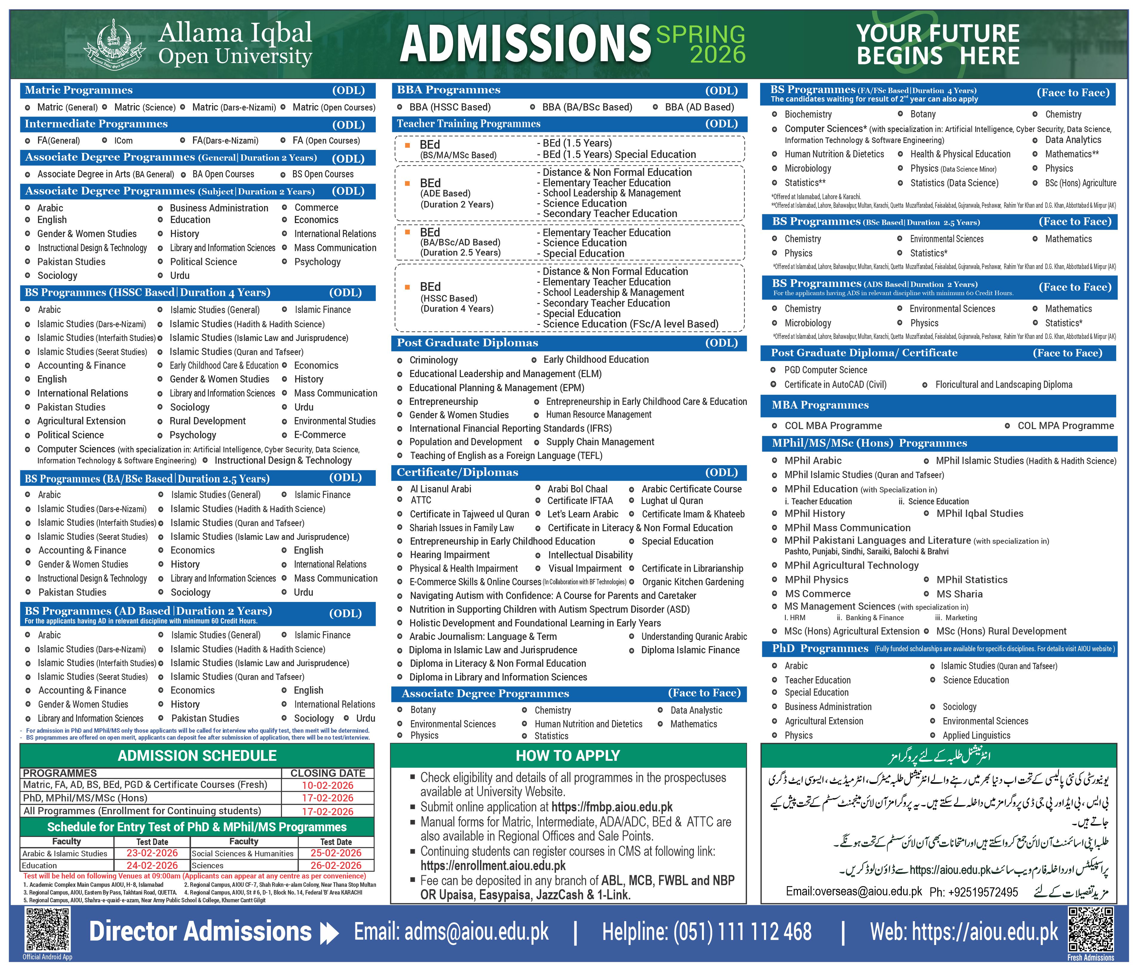 Advertisement for All Face to Face and ODL Programmes