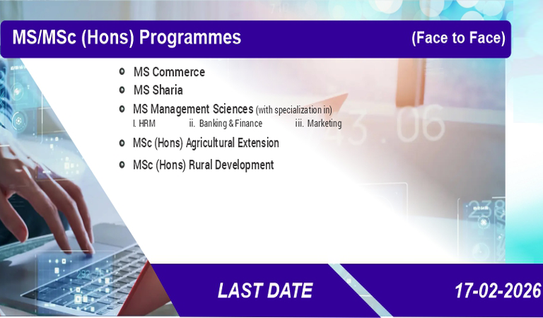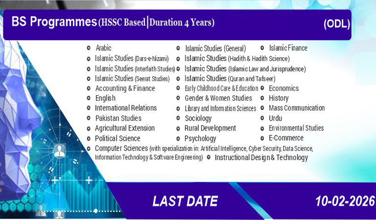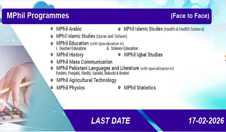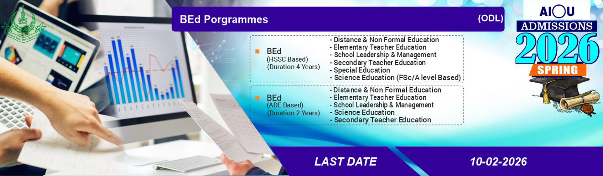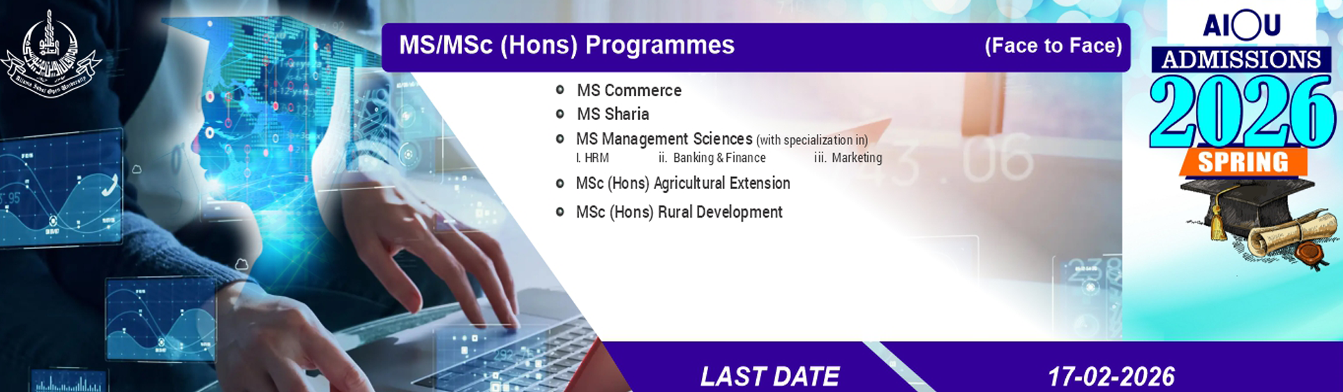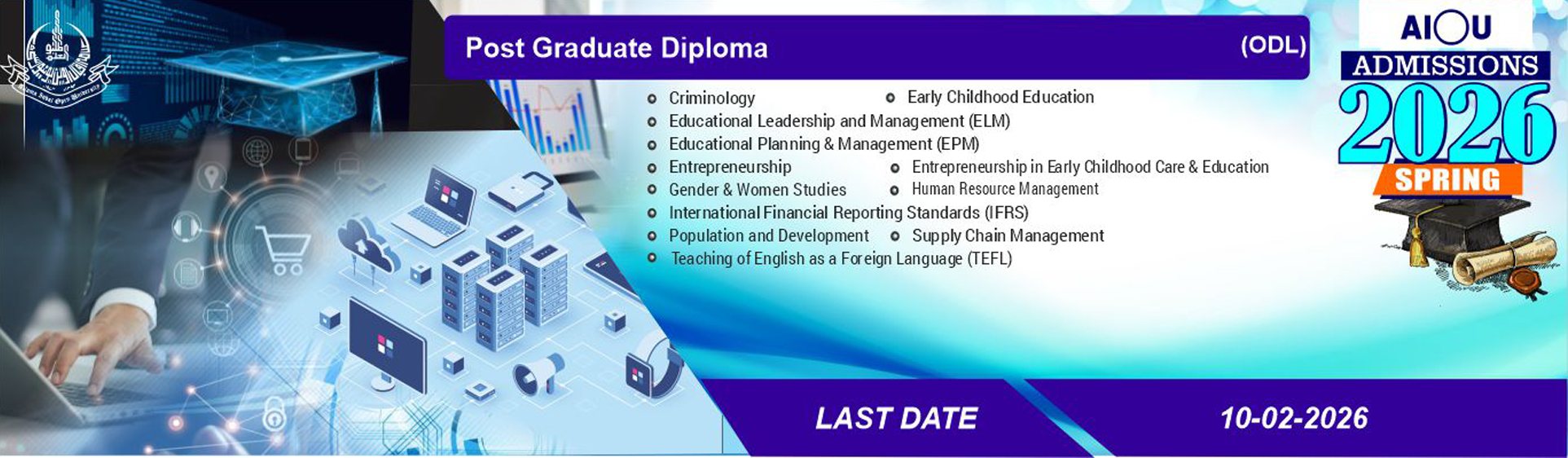 Allama Iqbal Open University, the largest university of Asia in distance education, which primarily focuses on the educational needs of masses by providing quality education at their doorsteps all over the country and by blurring spatial and temporal boundaries. Currently, the university offers unique educational opportunities to a huge proportion of 1 million students in a diverse and dynamic range of programs starting from Matriculation to the PhD level.