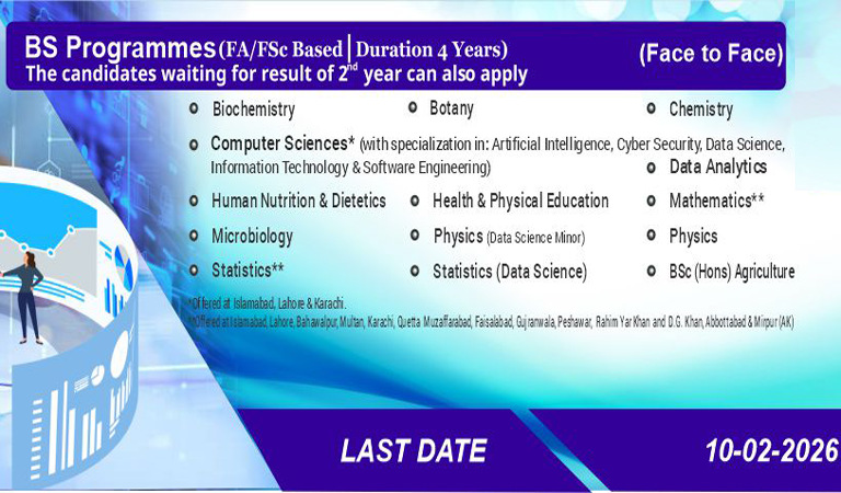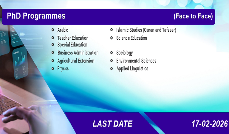 The University exclusively focuses on enhancing female literacy ratio in the country so that women can perform their vital role in the process of national progress and development. The university takes same special initiatives for the underprivileged and marginalized segments of the society not only for their economic empowerment but also for poverty alleviation in the country.
