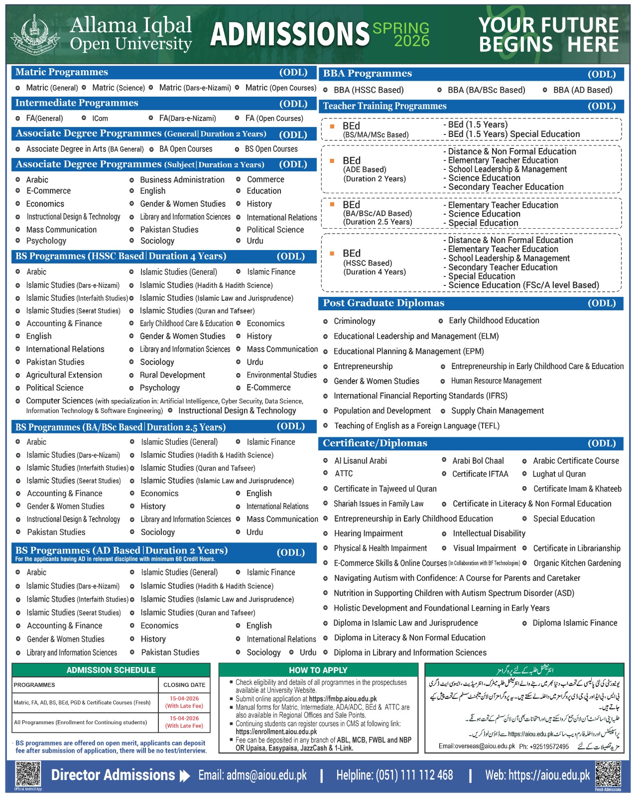 Advertisement for All Face to Face and ODL Programmes